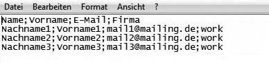 Maybe you have already collected email addresses to which you want to send a newsletter. No matter in which database these information are stored – you only need to save them in a CSV file (for example with Excel) and import them Newsletter-Marketing-Center.de. You can pack your CSV file as a zip to accelerate the uploading of large files. That's how it works:In the first line of the table, there should be field names – first name, surname, email address etc. An example: |